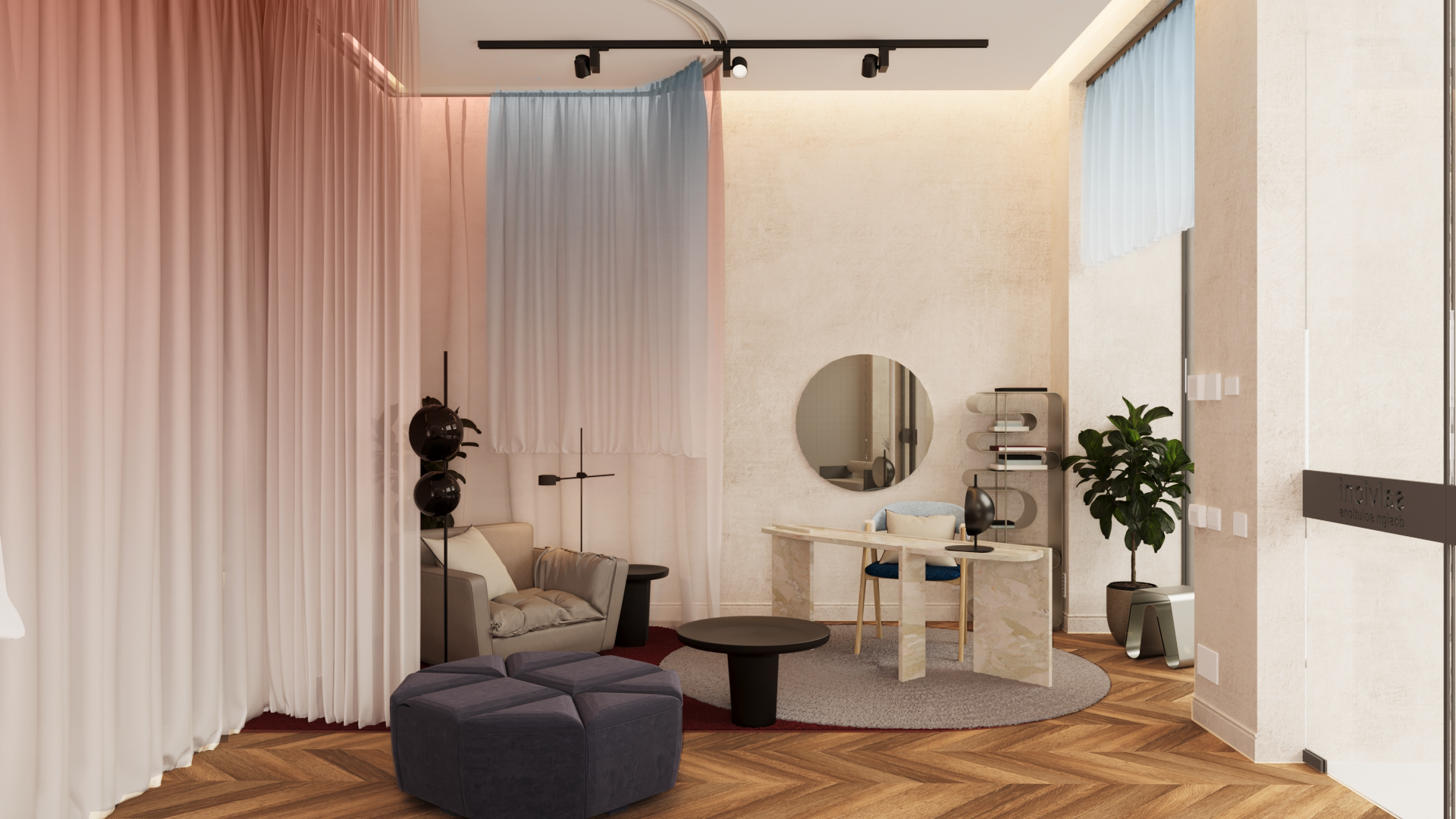 The Salvioni showroom embodies the essence of Paolo Stella’s home, merging elegance with versatility. Designed as a dynamic, living gallery, it invites visitors to engage with Italian design through curated spaces that balance vibrancy and calm. A memory wall captures and displays client interactions, turning their stories into part of the space’s evolving narrative. Layered textiles, adaptable furniture and transformative lighting create a multi-dimensional experience, allowing the showroom to shift atmospheres effortlessly.
